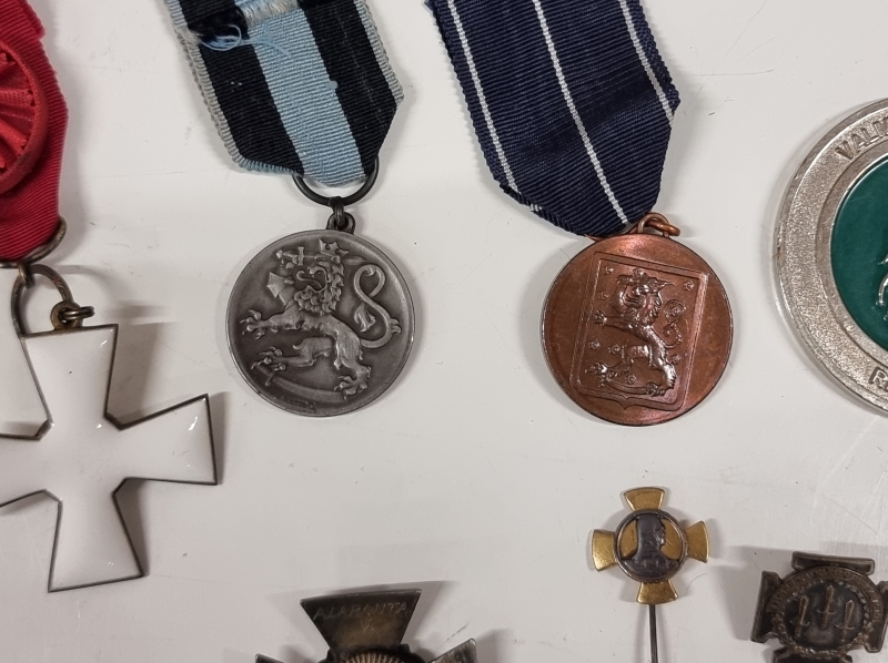 #1737 Erä kunniamerkkejä. Suomen leijonan ritarimerkki, Vapaussodan muistomitali, RUK 49 -risti ym.