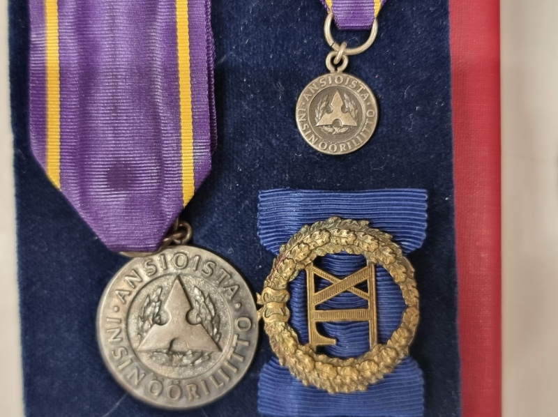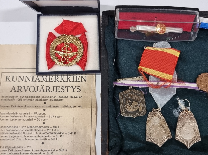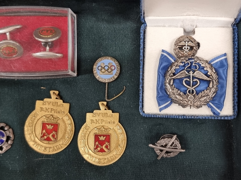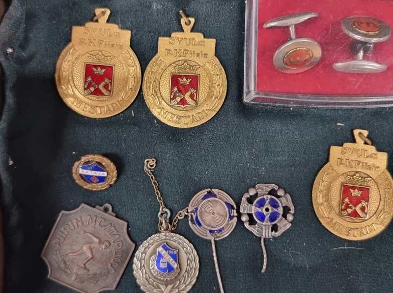 #2008 Vanhoja mitaleita ja merkkejä. Mm. Kataja 1900, Oslo 1952 Olympia, Insinööriliitto, SVUL.