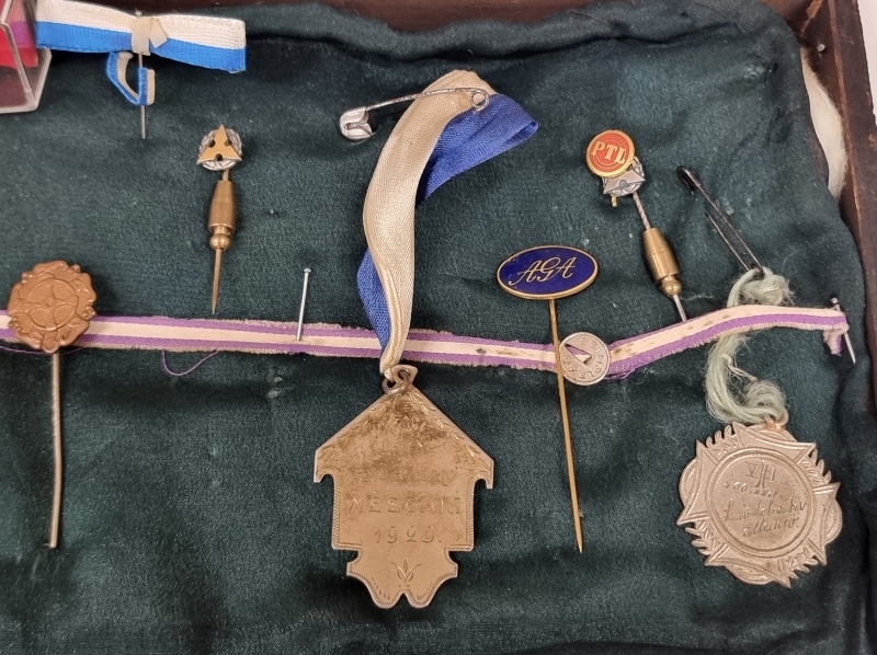 #2008 - Vanhoja mitaleita ja merkkejä. Mm. Kataja 1900, Oslo 1952 Olympia, Insinööriliitto, SVUL.