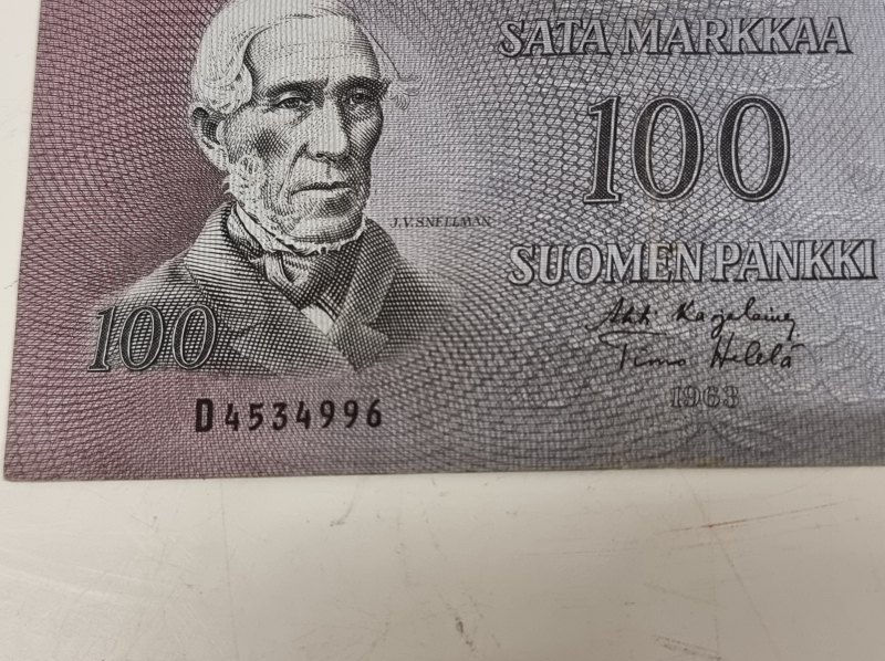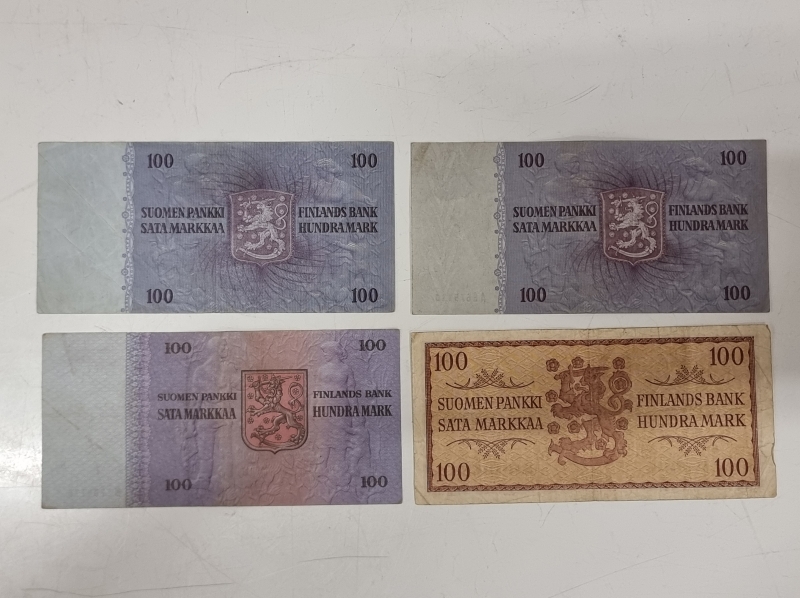#1917 4kpl suomalaisia 100mk seteleitä. Mm. 2kpl 1963