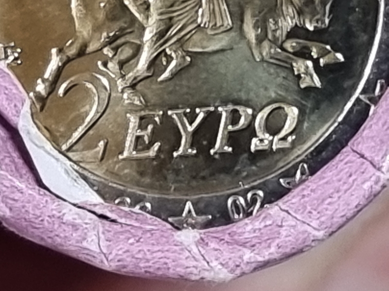 #1890 - Harvinainen avaamaton Kreikan 2 euron kolikkopuntti. Valmistettu Suomessa v. 2002