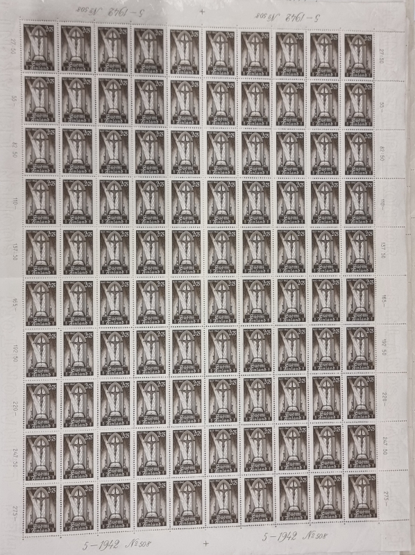 #1739 9 kpl postimerkkiarkkeja. Mm. Itä-Karjala sot. hallinto.
