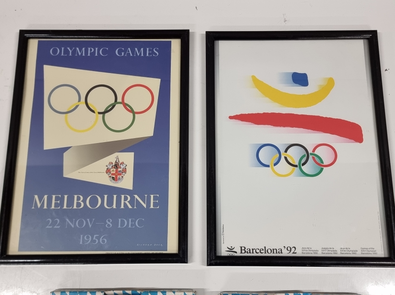 #2310 Olympia-aiheisia esineitä: 2kpl tauluja ja 2kpl lautasia. Mm. Barcelona 1992