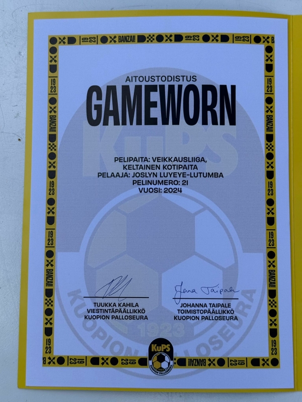 #1908 Luyeye-Lutumba mestaruuskotipelipaita signeerauksilla vuodelta 2024, Gameworn todistuksella