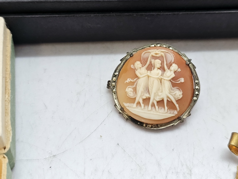 #1348 - Citizen rannekello + riipus + hopeaa: iso rintakoru + Tapio Wirkkala + camee-koru