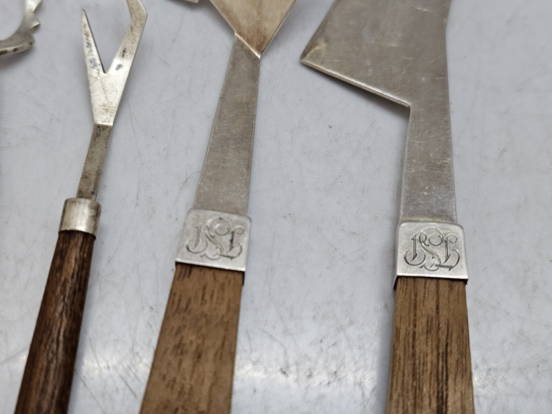 #1369 - Erä hopeisia design ottimia puukahvoilla