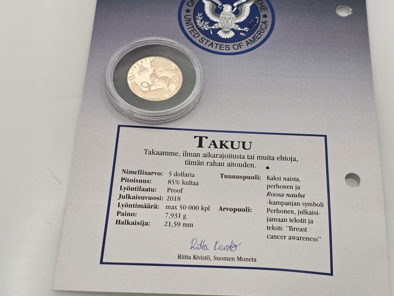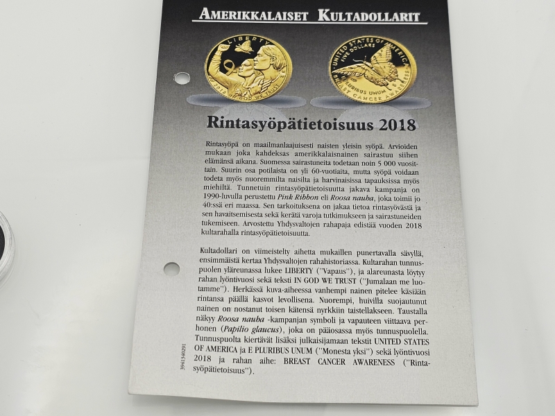 #1379 - Kultakolikko - Amerikkalaiset kultadollarit, Rintasyöpätietoisuus 2018, 7,931g