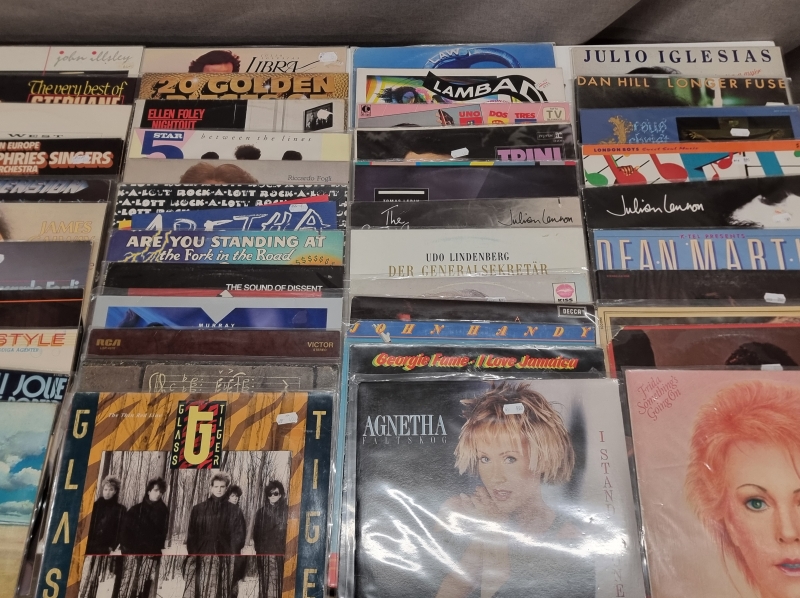 #2130 - 45kpl lp-levyjä. Kaikki soittokuntoisia. Mm. Freestyle, Agnetha Faltskog, Tomas Ledin