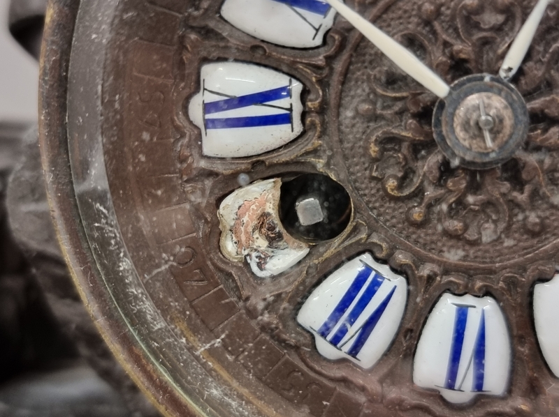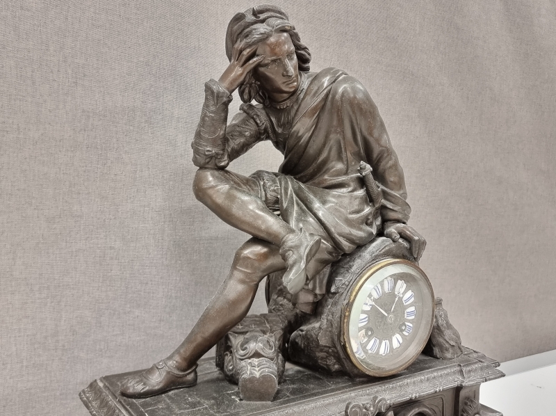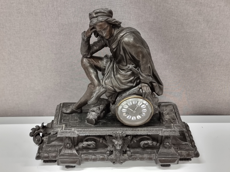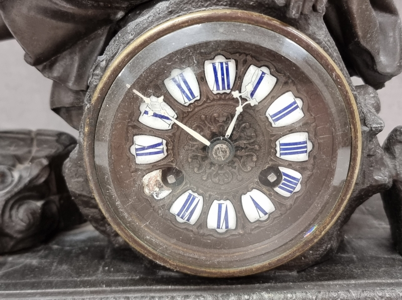 #1925 1800-luvun pöytäkello patsaalla ja emalinumeroilla