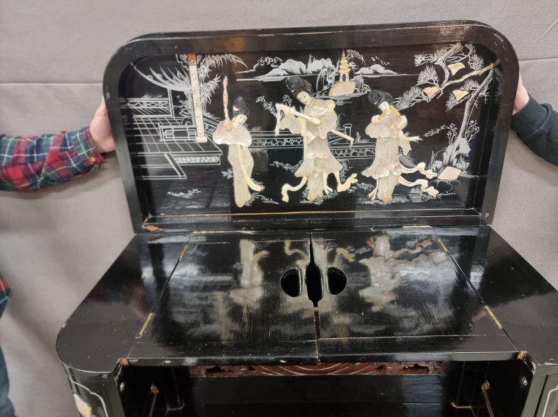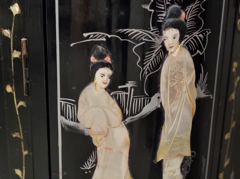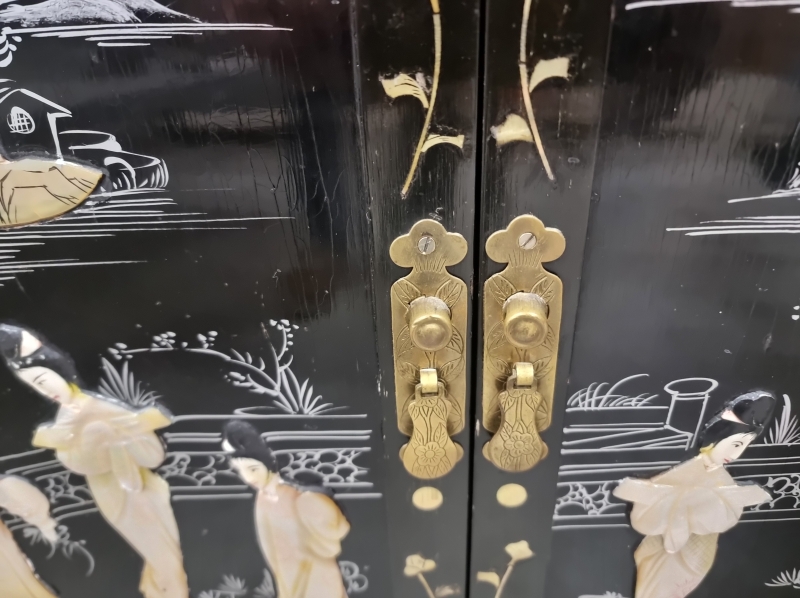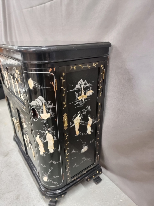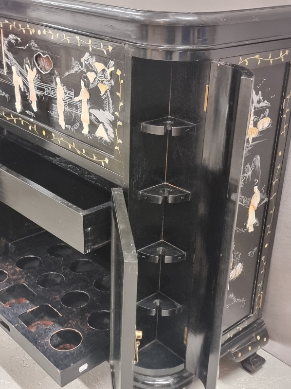 #1803 Itämainen baarikaappi runsailla, taidokkailla helmiäiskoristeilla