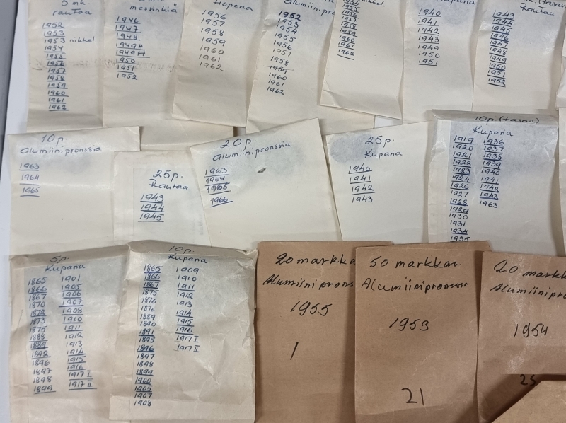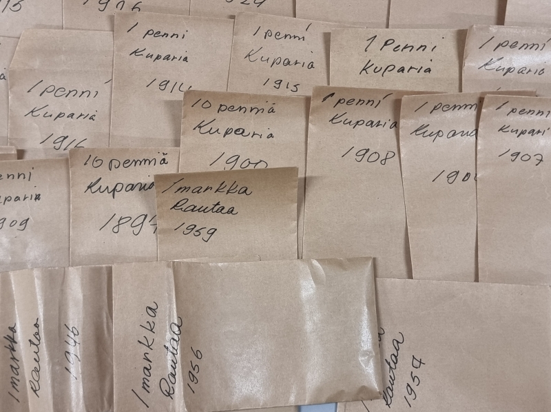 Pussien sisältöä ei tarkistettu. Joissain pusseissa useita kolikoita.
