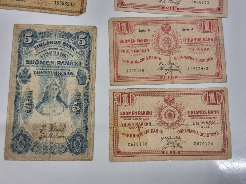 #1932 15kpl suomalaisia seteleitä. Mm. 5mk 1897 ja 5mk 1909