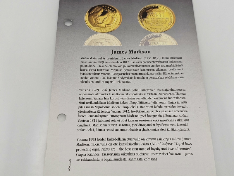 #1390 - Kultakolikko - Amerikkalaiset kultadollarit, James Madison, 8,36g
