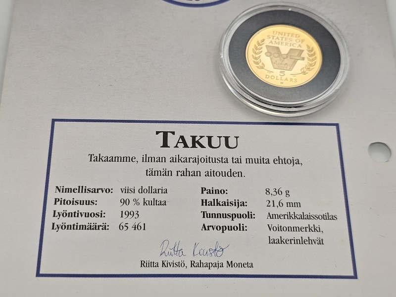 #1391 Kultakolikko - Amerikkalaiset kultadollarit, 50v II -maailmansodasta, 8,36g