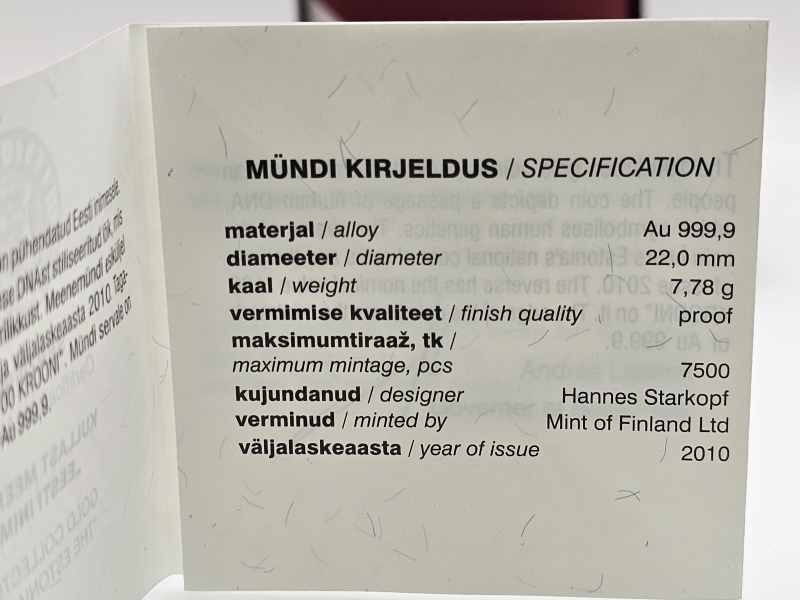 #1402 - Kultakolikko: 100 kr Estonian People, 7,78g