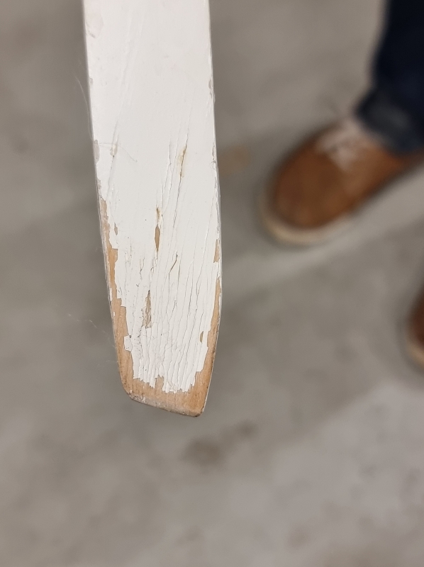 Toisen kukkapylvään pinnassa maali krakeloitunut. Pylväiden jaloissa maalit lohkeillut. Pylvään korkeus: 90cm