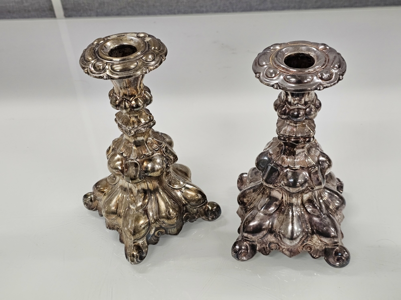 #1439 2kpl hopeisia Barokki -kynttilänjalkoja
