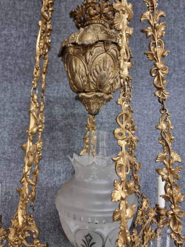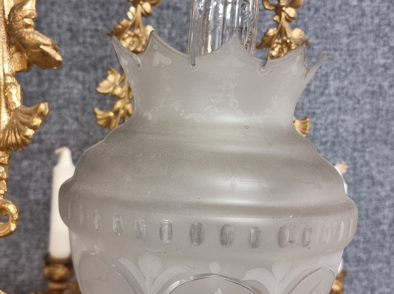 Säiliö ja lasi ehjä. Kristalleissa pieniä puutteita. Korkeus: 135-150cm