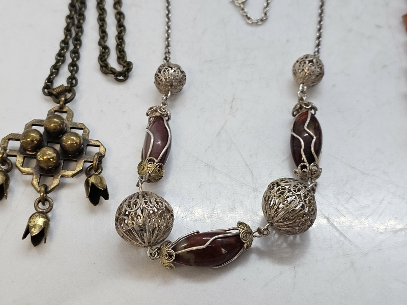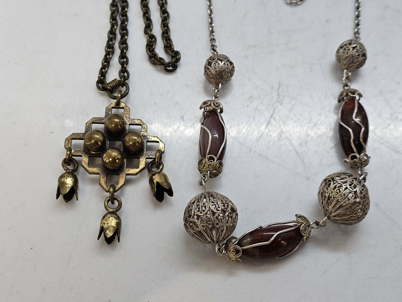 #1471 Erä koruja: Mm. meripihkaa, hopeaa [mm. Kalevala koru]