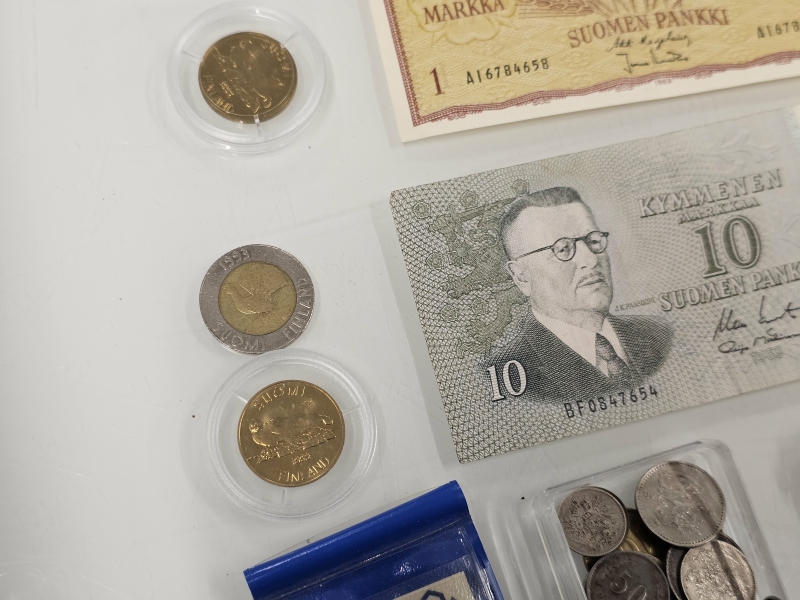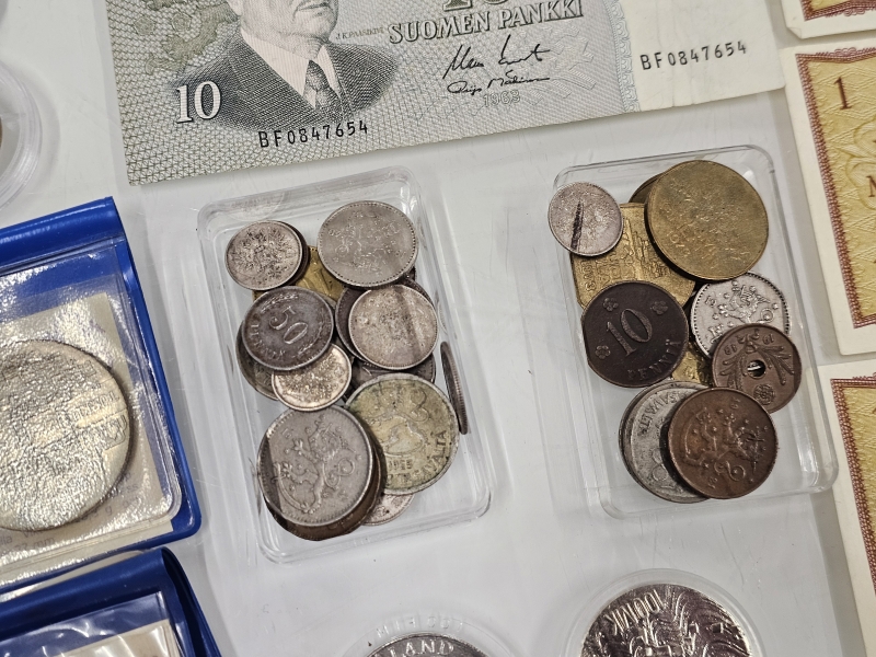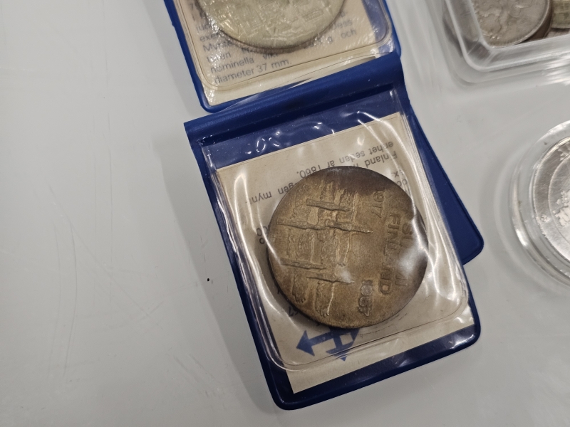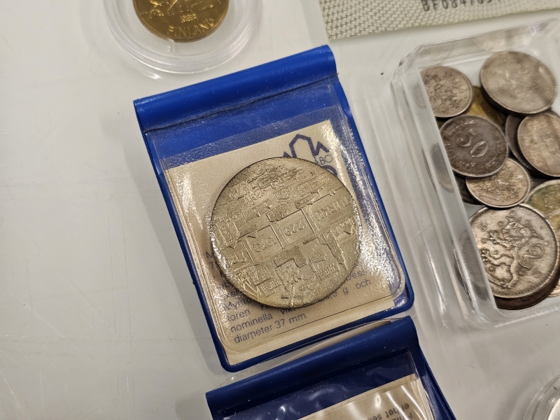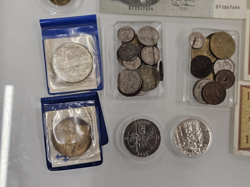 #1486 - Erä vanhoja rahoja, 3kpl hopeisia juhlarahoja, hopearahoja ym.