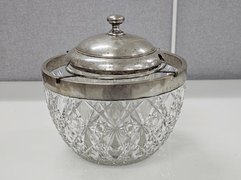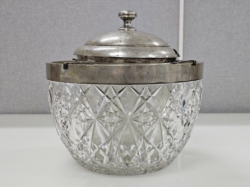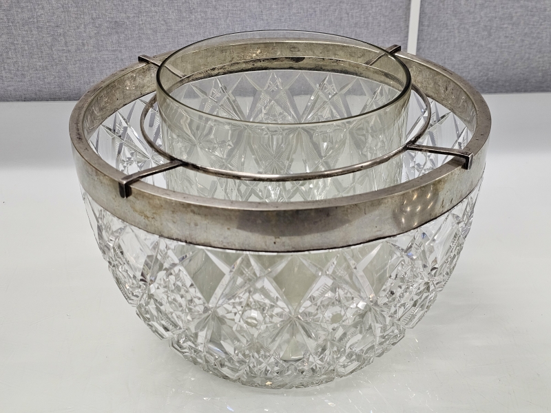 #1477 Poikkeuksellisen näyttävä isokokoinen kristalli/hopea jäähdytysastia shampanjalle / kaviaarille / jäätelölle, valmistaja Gebrüder Friedländer, Berliini 1800-1900-l. vaihde