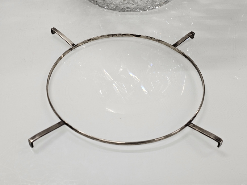 Halkaisija 34,5cm, keskimaljan k: 24cm. Ilman keskiosaa voi käyttää shampanjacoolerina, keskiosan kanssa jäitä ympärille ja kaviaarit/jäätelöt keskimmäiseen maljaan. Kannen ja väliosan paino 650g + reunan hopeat [yhteensä reilusti yli 1kg!]. Pitoisuus 800/1000. Friedländer toimi Preussin ja Saksan keisarillisen hovin hovihankkijana
