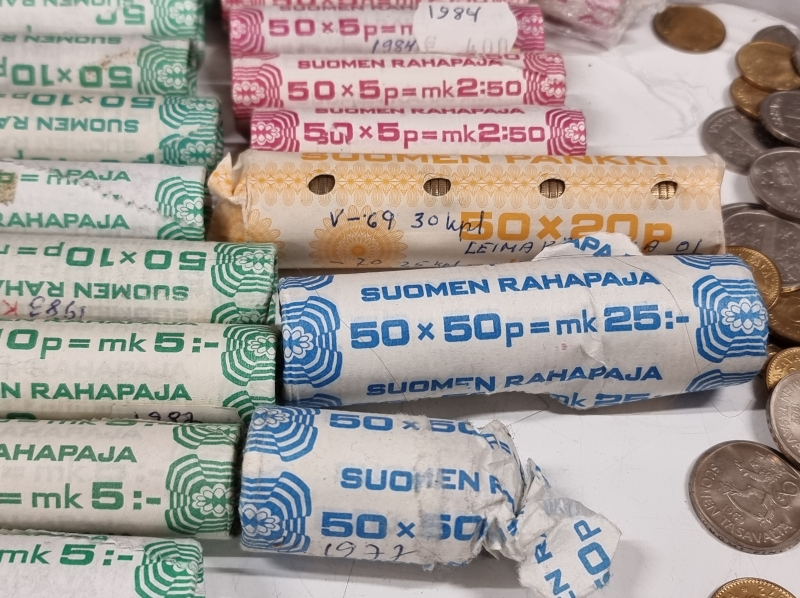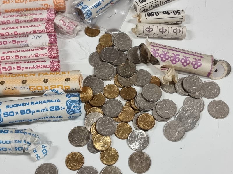 #1950 - Erä markka -ajan kolikkopuntteja ja kolikoita.