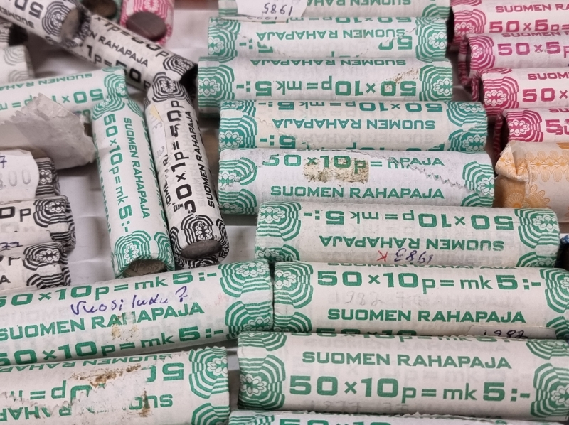 #1950 Erä markka -ajan kolikkopuntteja ja kolikoita.