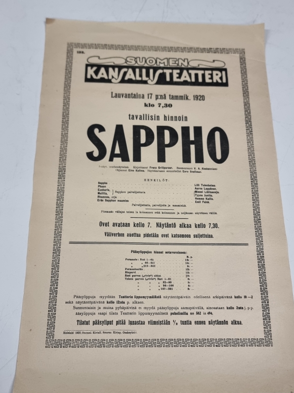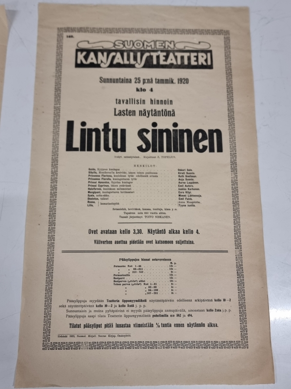 #2042 5kpl Kansallisteatterin mainosjulisteita vuodelta 1920