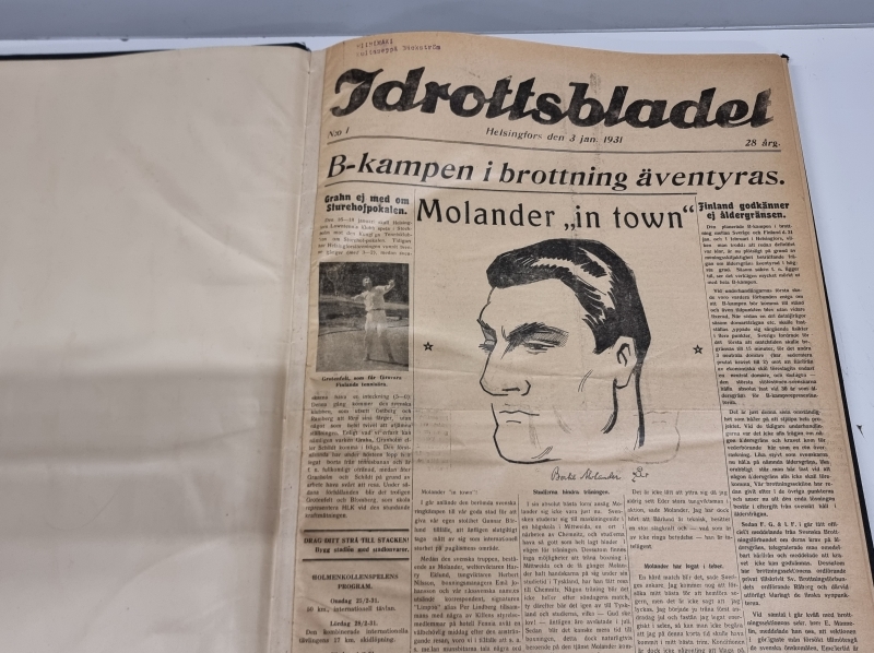 #2413 2kpl Idrottsbladet -vuosikirjoja vuosilta 1930, 1931 ja postimerkkejä