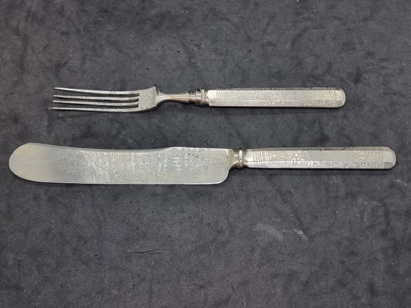#2415 - Vanhat hopeoidut aterimet laatikossa.