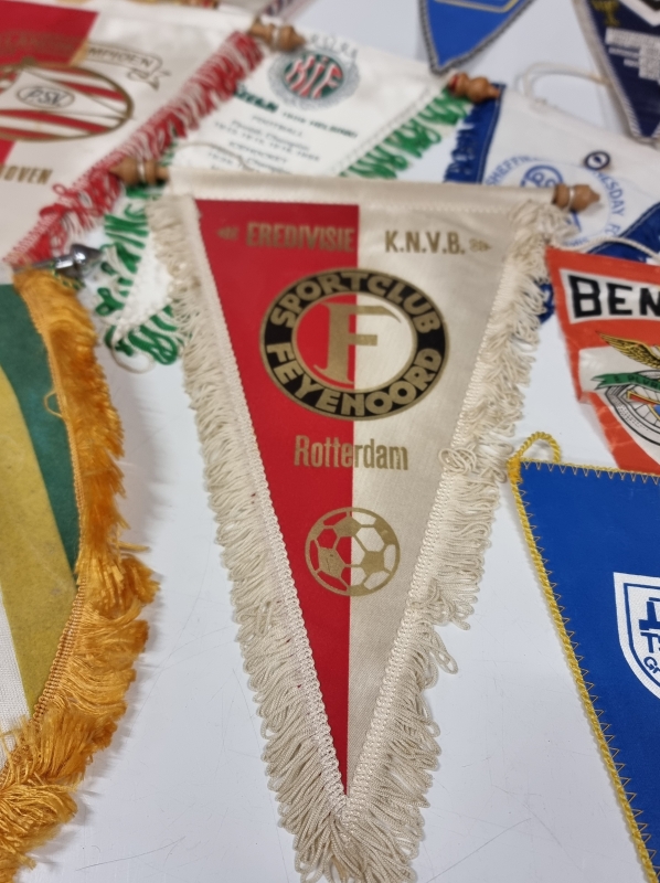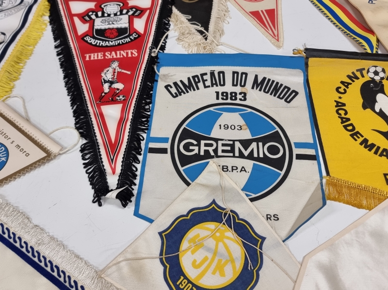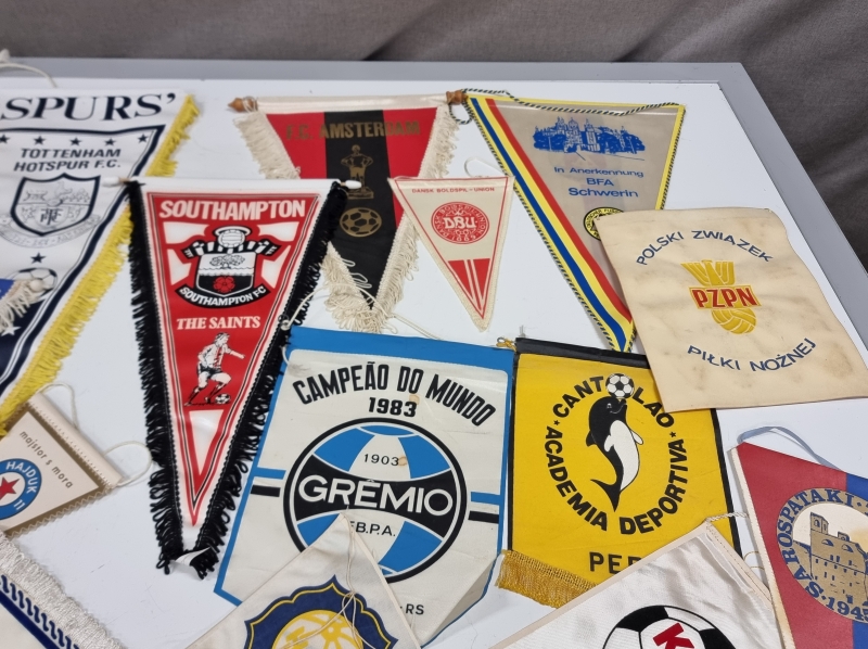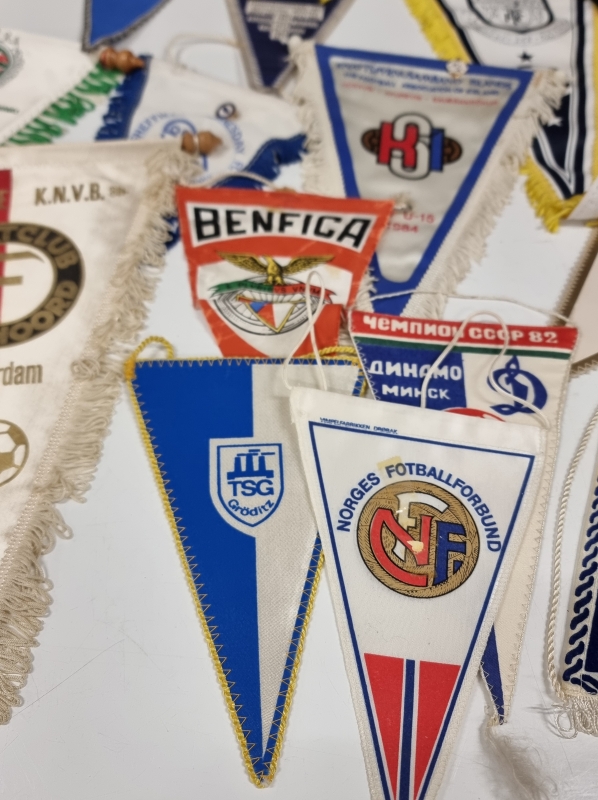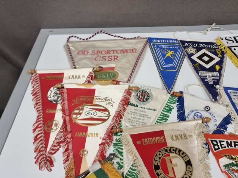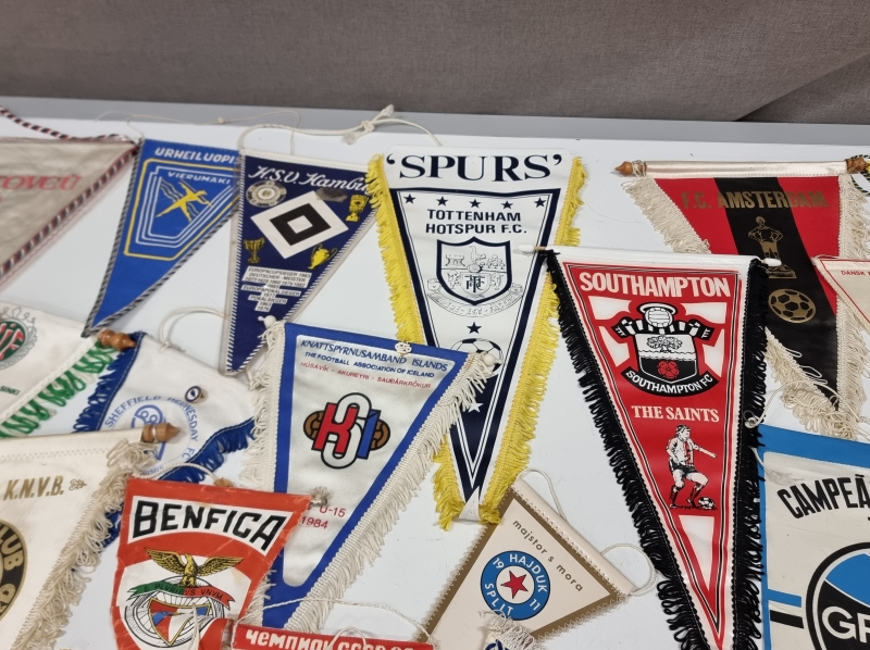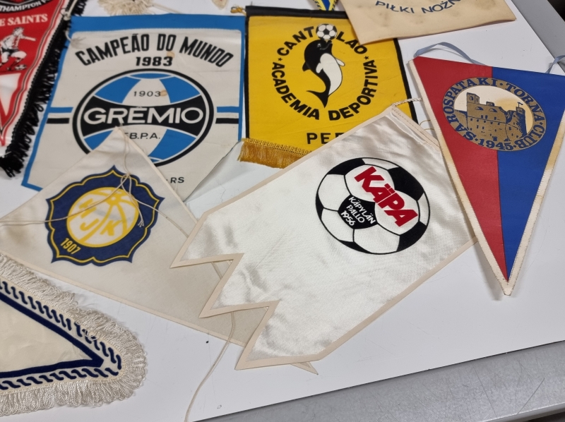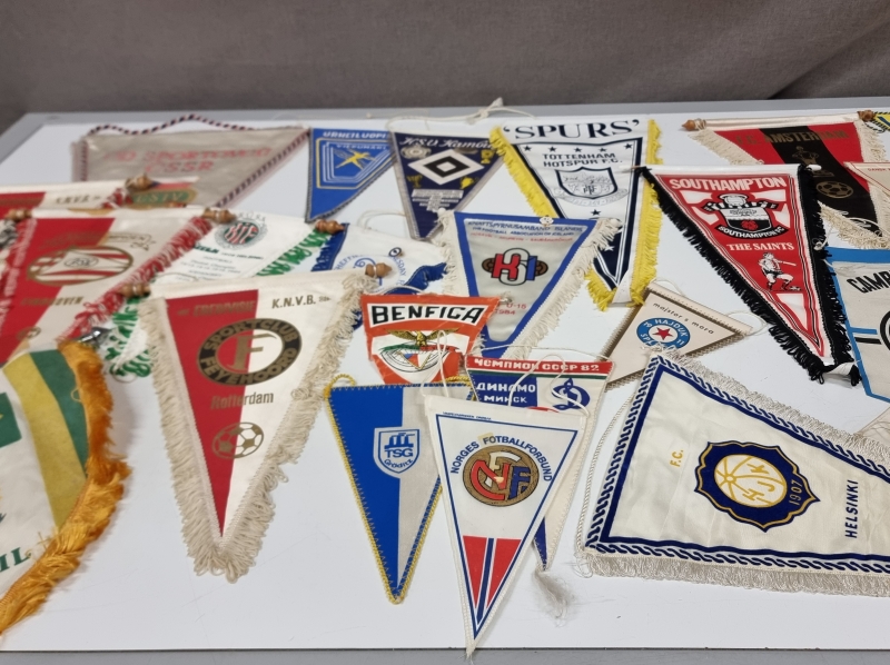 #2284 Todella hieno erä jalkapallojoukkueiden vanhoja viirejä 1970-80 luvuilta. Osassa pinssi.