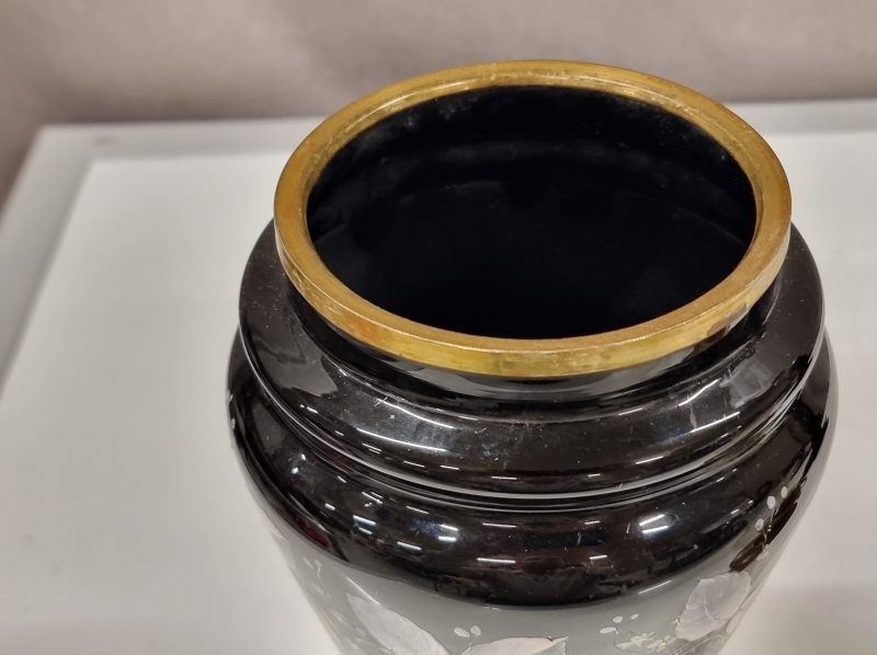#1828 - 1800-luvun öljyvalaisin käsinmaalatulla lasirungolla