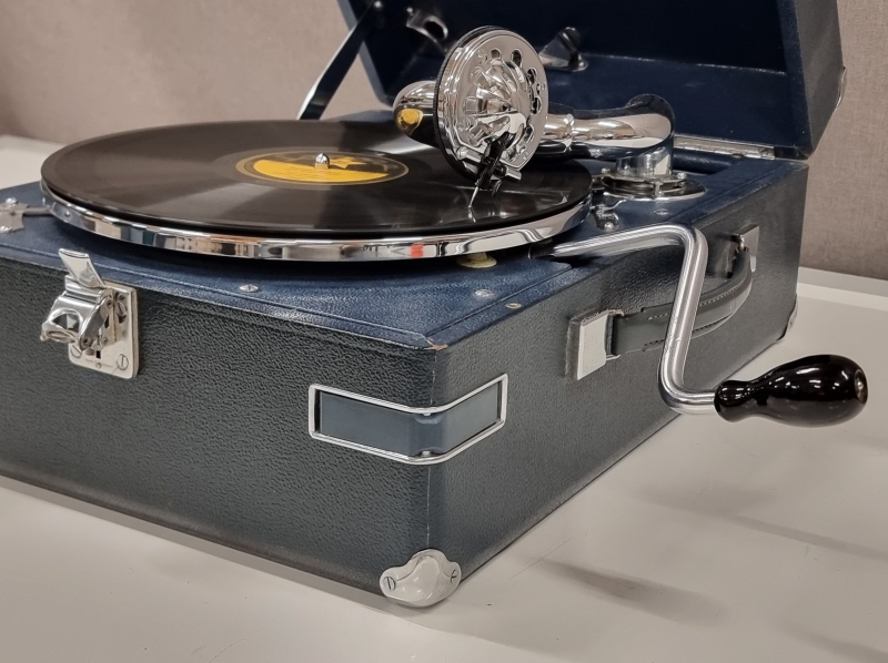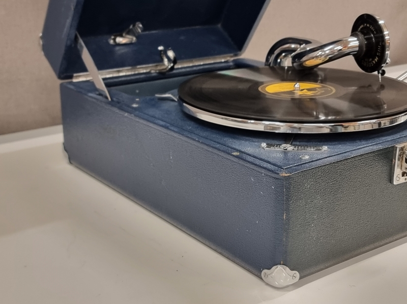 #1967 - Matkagramofoni His Masters Voice. Todella siistissä kunnossa. Neuloja mukana