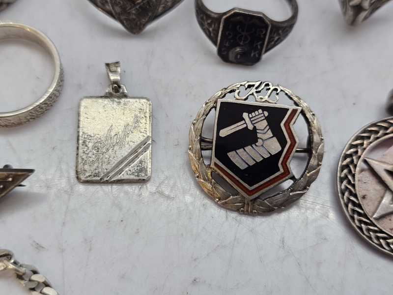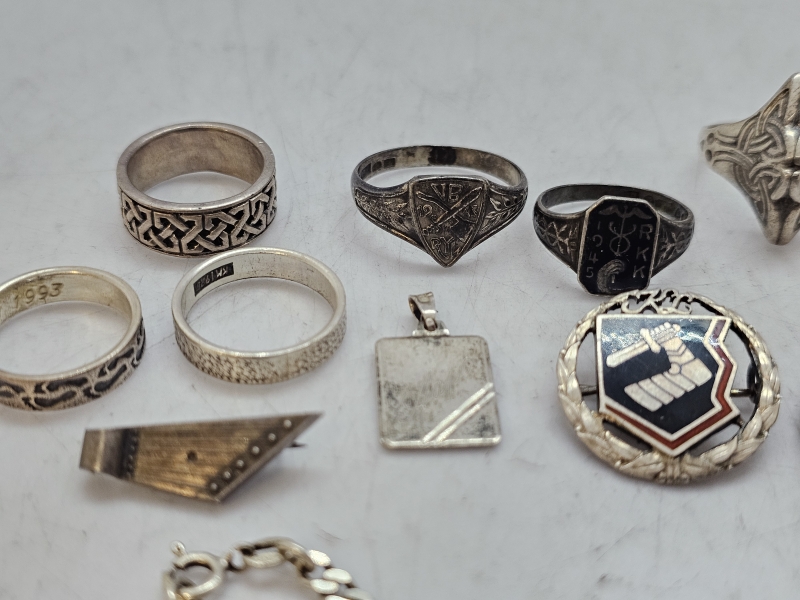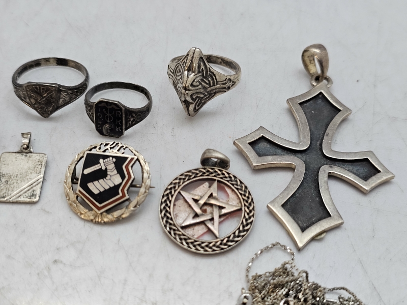 #1543 Erä hopeakoruja: Mm. sormuksia, riipuksia ym.