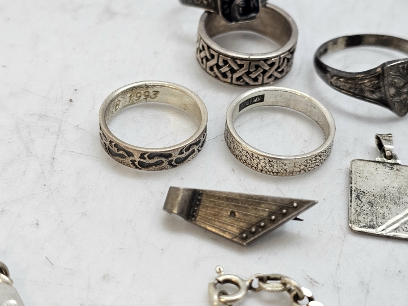 #1543 - Erä hopeakoruja: Mm. sormuksia, riipuksia ym.