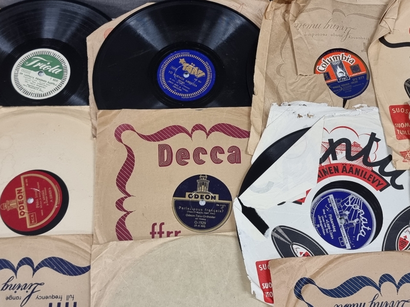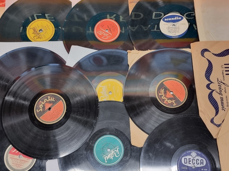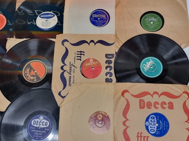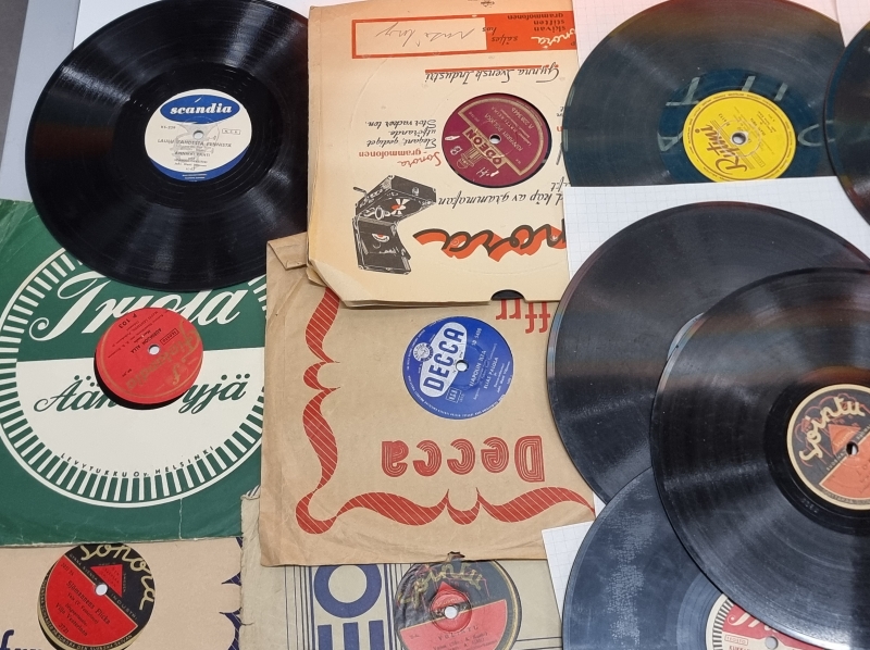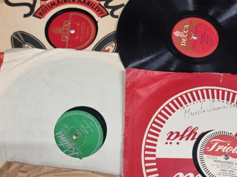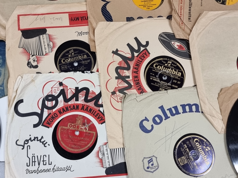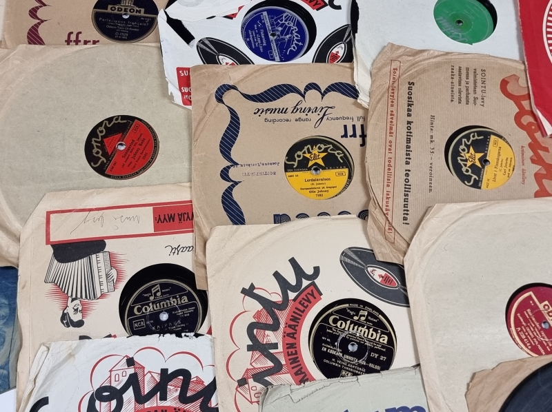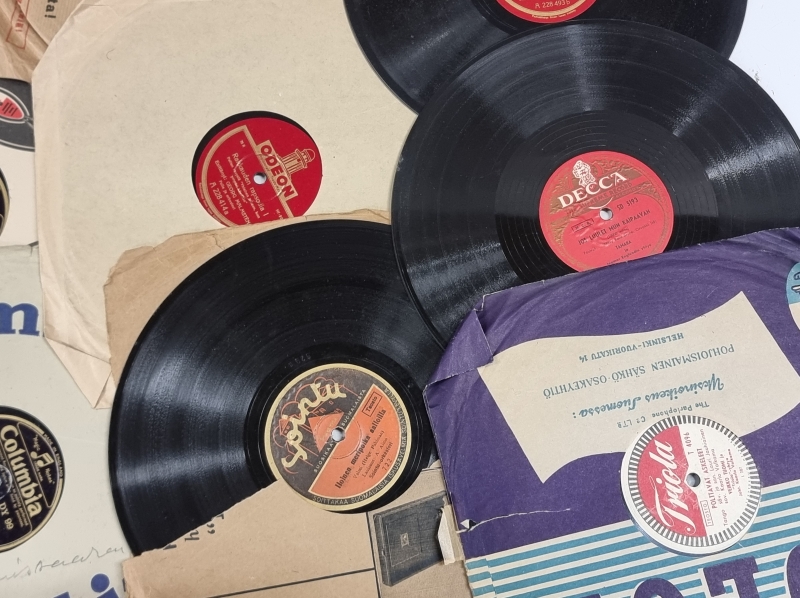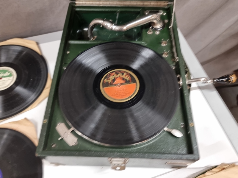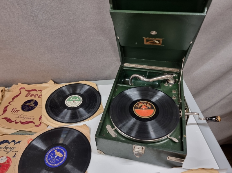 #2061 - His Masters Voice matkagramofoni + paljon levyjä