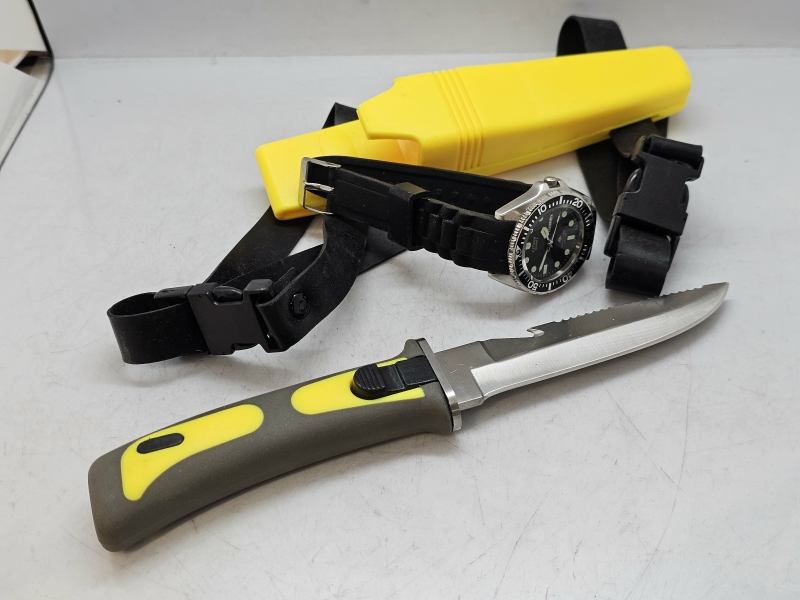 #1606 Mil-Tec sukeltajan puukko ja Citizen Promaster sukelluskello