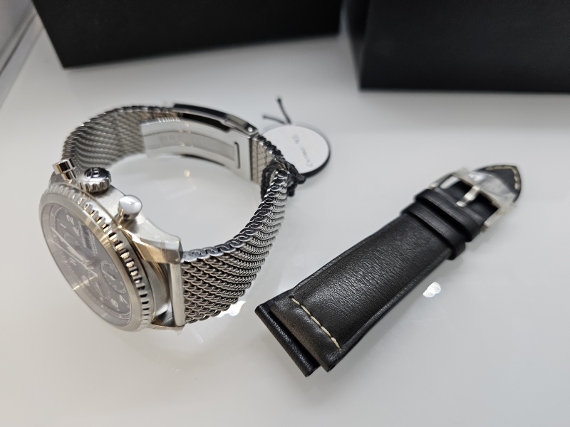 Mukana laatikko, alkuperäinen lisäranneke [nyt kiinni olevan arvo n. 1000e] ym. Ref: 2911147. Halkaisija 43mm. Alkuperäiset muovit vielä kiinni rungossa. Ostettu Suomesta kelloliikkeestä, takuu voimassa
