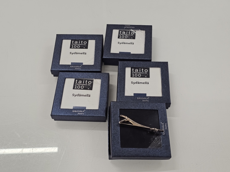 #1602 - 5kpl hopeisia solmiopidikkeitä, Kalevala koru "Sydämellä", tilaustyö