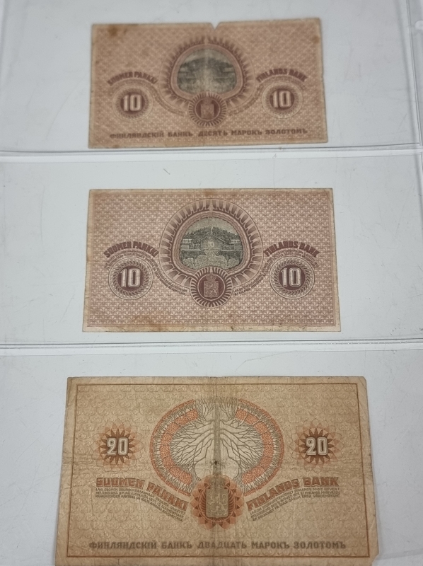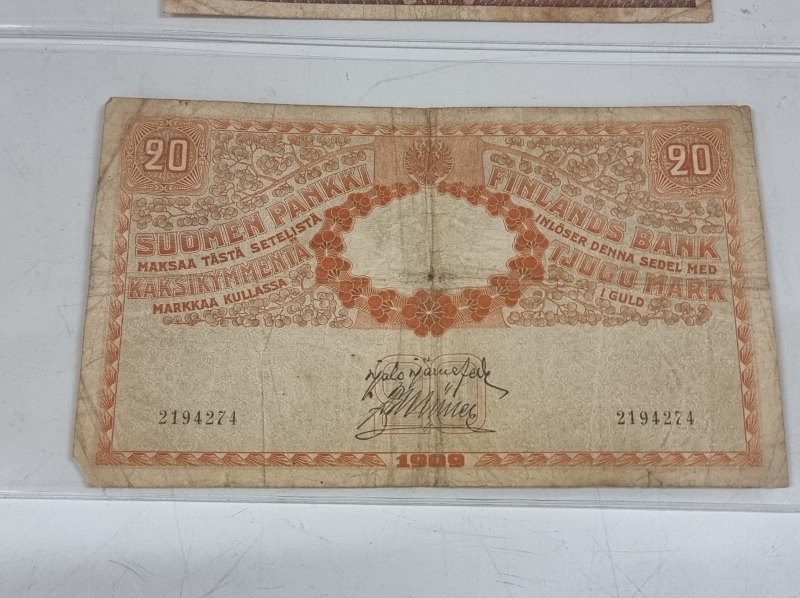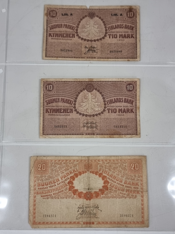 #1919 2kpl 10mk seteliä v.1909 ja 1918+ 20mk seteli v. 1909