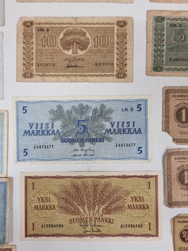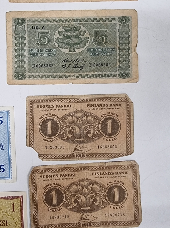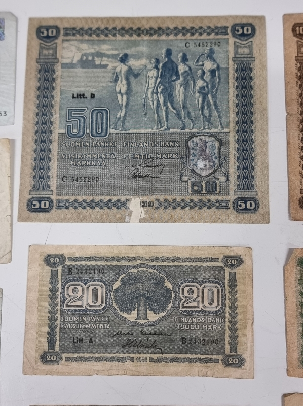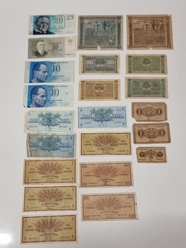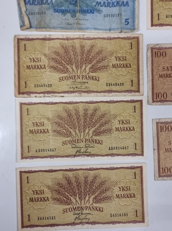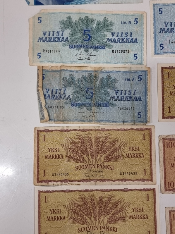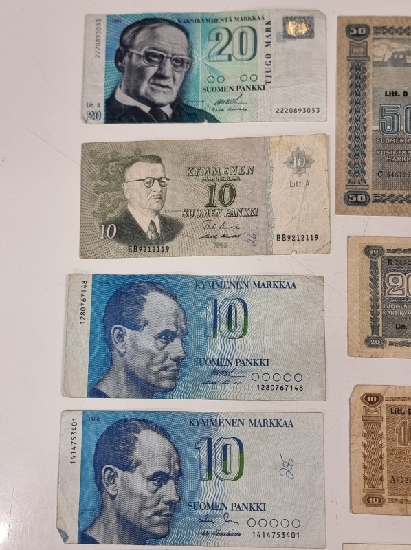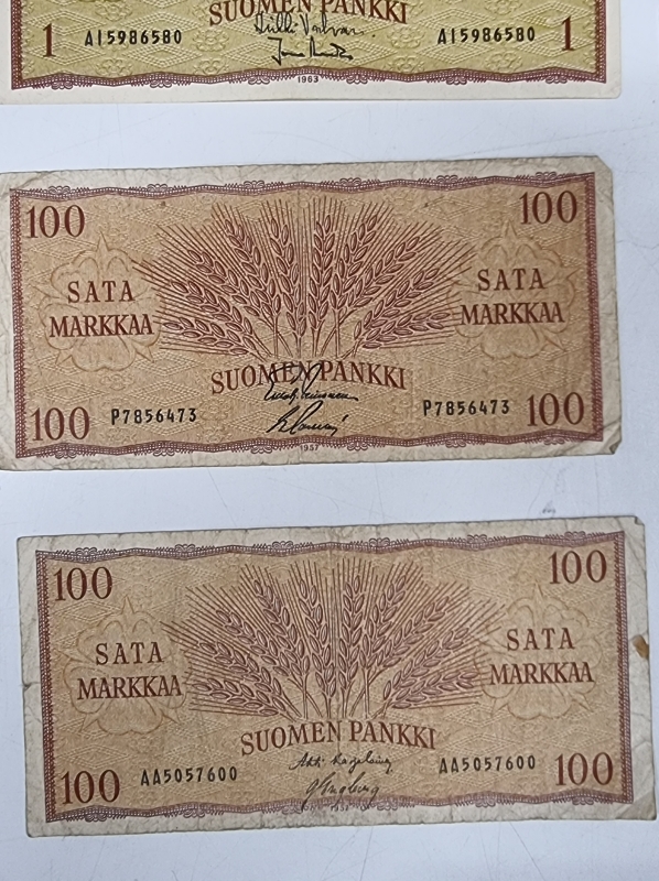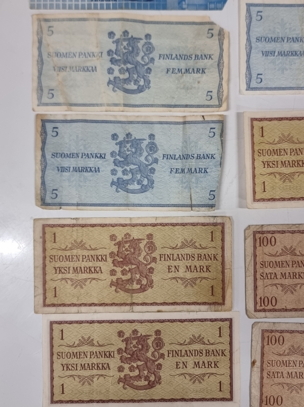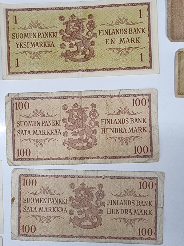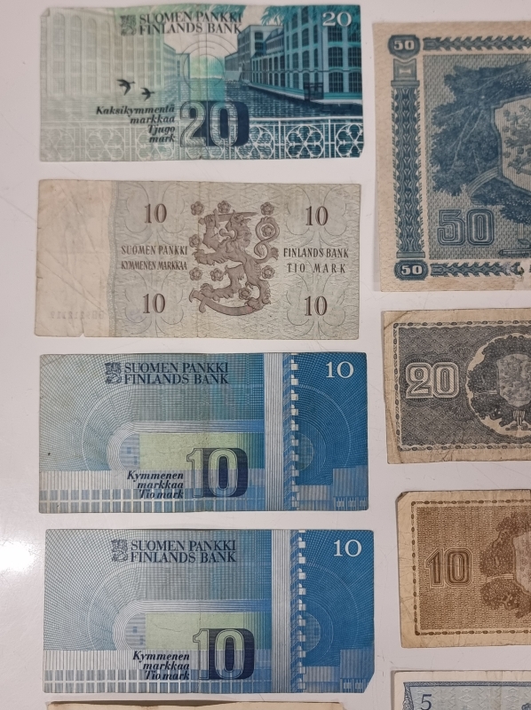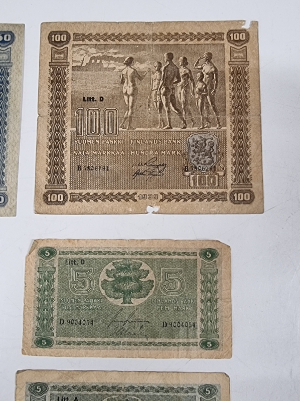 #1921 Erä suomalaisia seteleitä: Mm. 100mk 1939 ja 10mk 1986