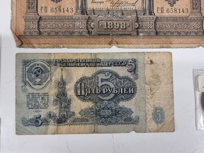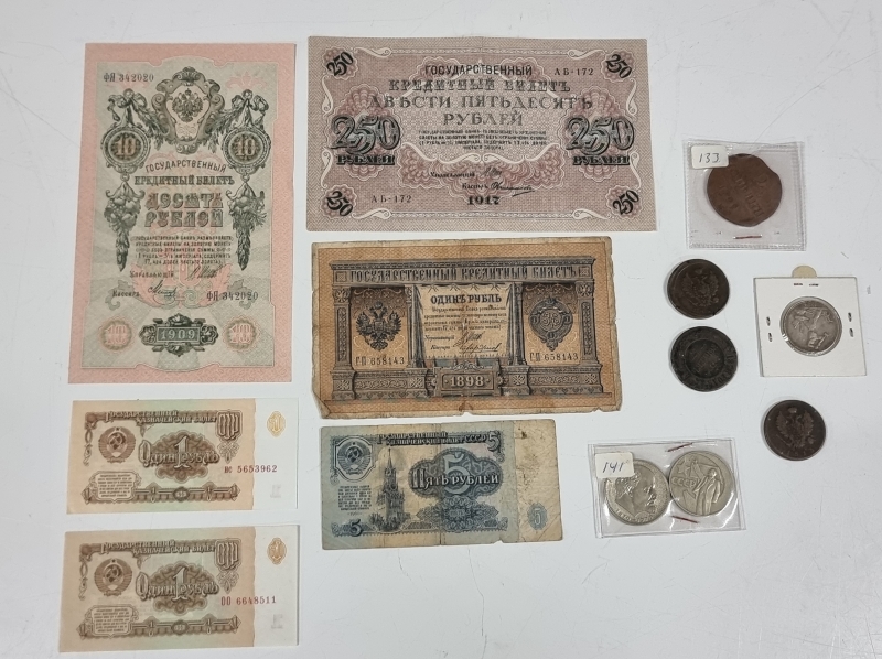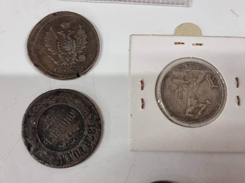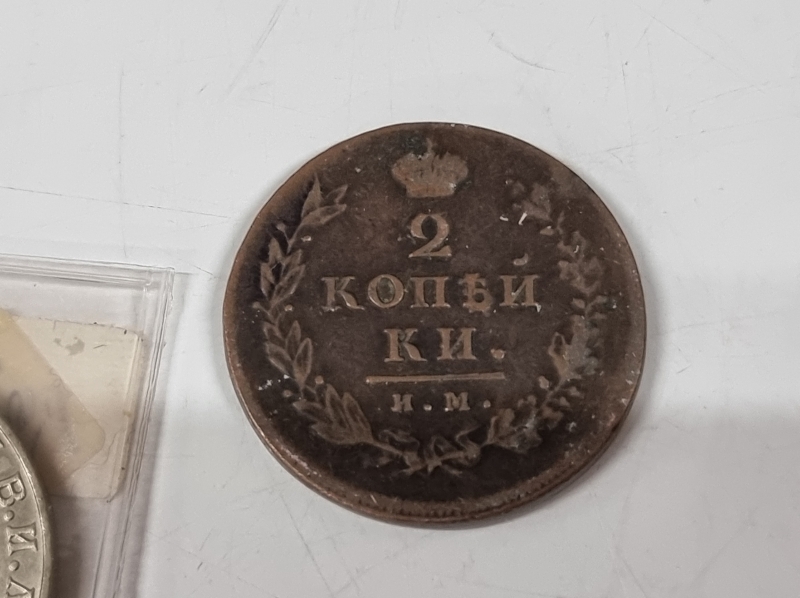 #1922 - Erä Venäläisiä ja Neuvostoliittolaisia kolikoita ja seteleitä: Mm. 2 kopeekkaa 1825