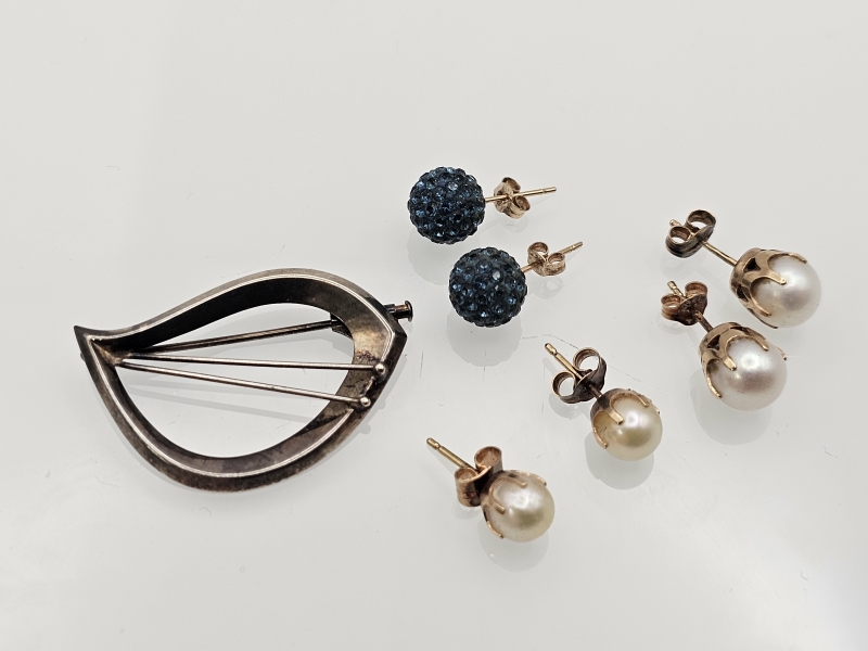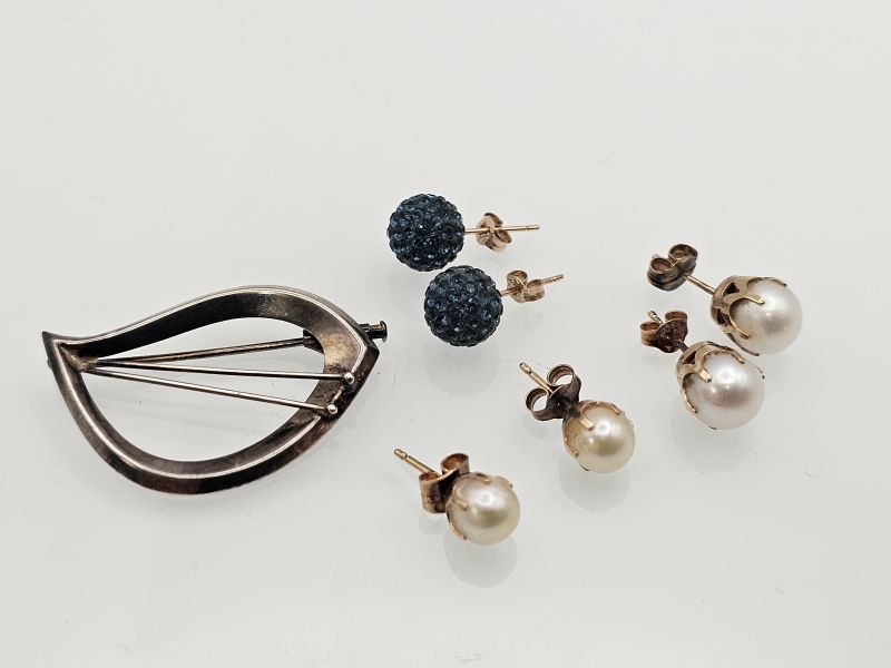 #1136 14k kultaisia koruja: Rintakoru & kolme paria korvakoruja, 6,4g