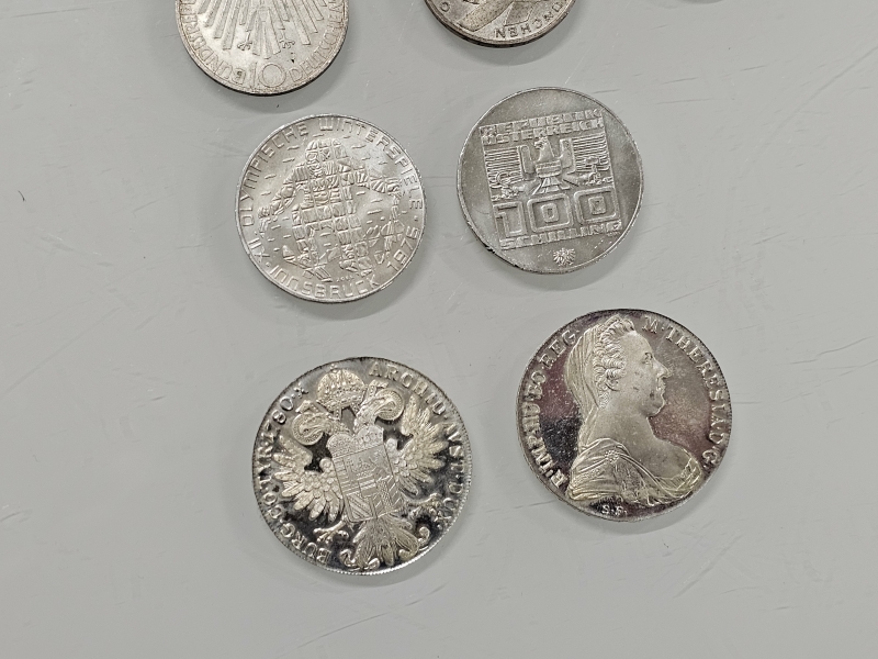 #1137 13kpl hopeakolikoita: Mm. 2kpl Itävalta 1780 + yhdysvaltalaisia kolikoita jotka eivät hopeaa