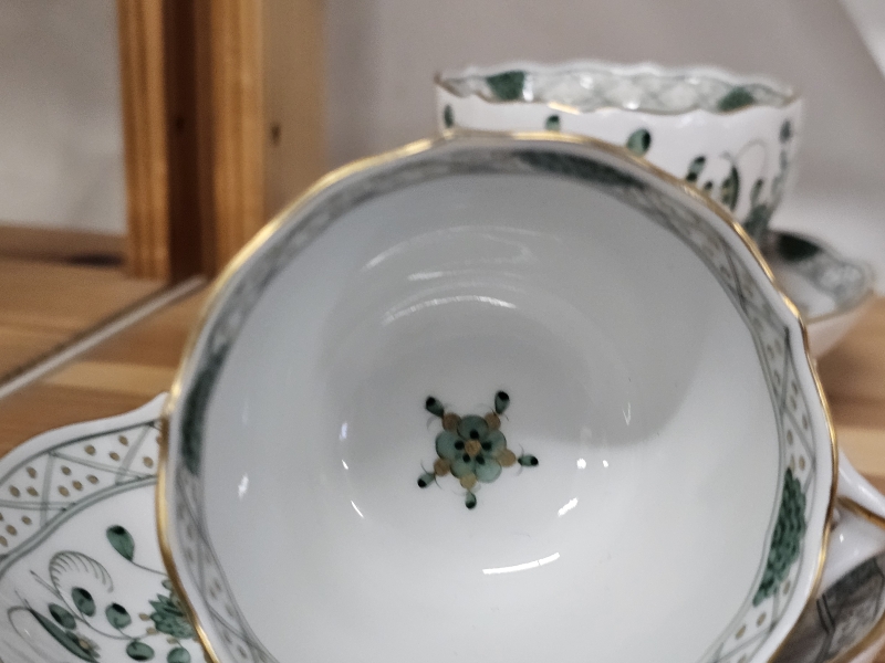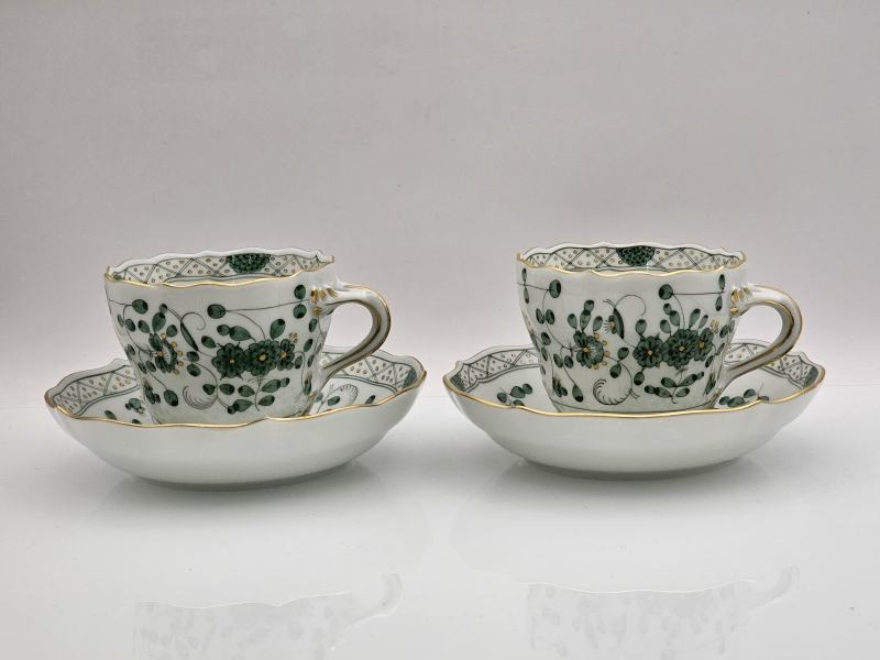 #600 2kpl Meissen Indian Green -sarjan kuppeja ja tasseja