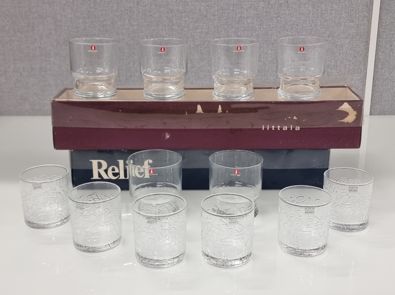 #79 - 6kpl Erkki Vesanto, Panu lasia + 6kpl Heikki Orvola, Relief - lasia