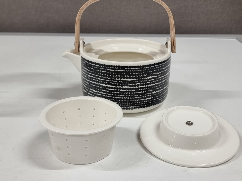 #87 Heikki Orvola, iso Miranda malja + Marimekko Oiva Siirtolapuutarha teekannu