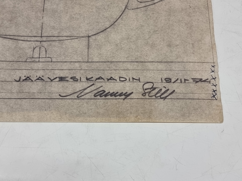 #123 Nanny Still, Riihimäen lasi, alkuperäinen mallipiirros "Jäävesikaadin" 1974