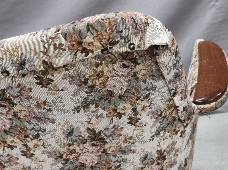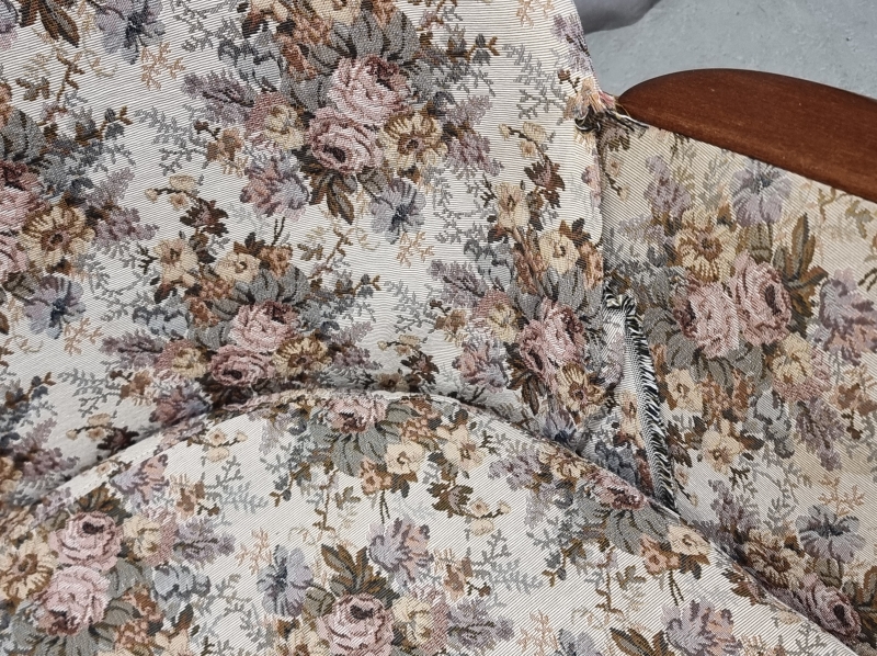 Myöhempi verhoilu. Jaloissa kulumaa. Leveys 142cm, korkeus 78cm